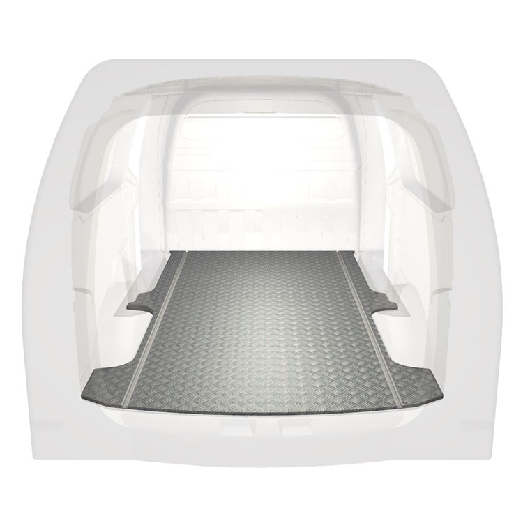 Lätt och robust golv med halkfri aluminiumdurk till en Hyundai H1. Golvets integrerade skenor (längsgående) används för snabb och säker installation av bilinredning och andra tillbehör.
