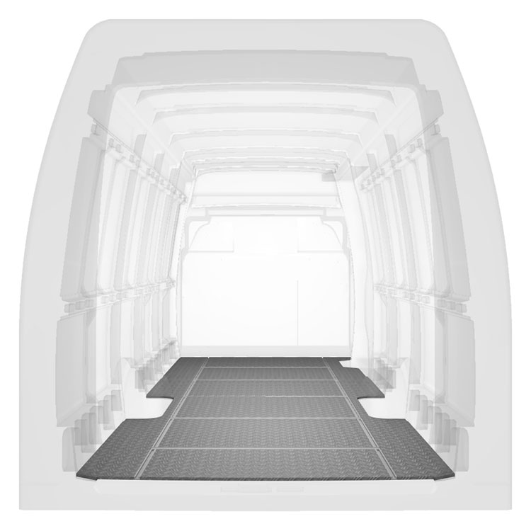 Lätt och robust golv med halkfri aluminiumdurk till en Iveco Daily. Golvets integrerade skenor (längsgående och tvärgående) används för snabb och säker installation av bilinredning och andra tillbehör.