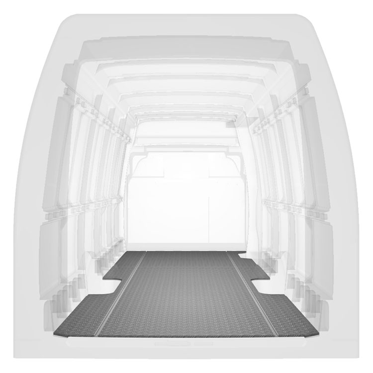 Lätt och robust golv med halkfri aluminiumdurk till en Iveco Daily. Golvets integrerade skenor (längsgående) används för snabb och säker installation av bilinredning och andra tillbehör.