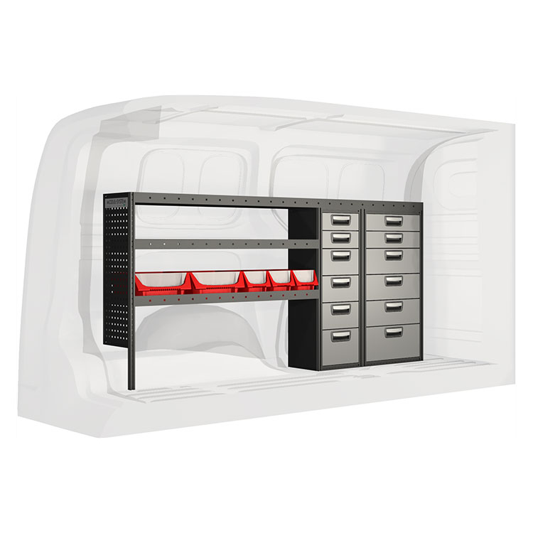 Inredningsförslaget är speciellt utformat för att passa bilmodellen perfekt. I de fall då hurtsar ingår så är dessa utrustade med kullagerskenor samt fullt utdragbara lådor med utdragsstopp. För ökad funktionalitet och minskad ljudnivå under färd är samtliga hyllor utrustade med gummimattor och hurtslådor med skumplast.