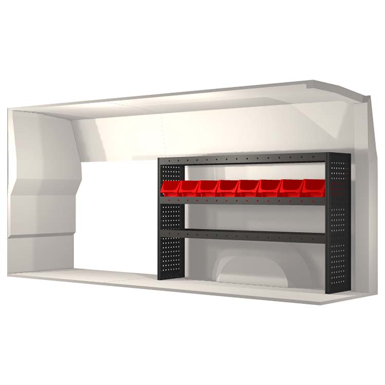 Inredningsförslaget är speciellt utformat för att passa bilmodellen perfekt. I de fall då hurtsar ingår så är dessa utrustade med kullagerskenor samt fullt utdragbara lådor med utdragsstopp. För ökad funktionalitet och minskad ljudnivå under färd är samtliga hyllor utrustade med gummimattor och hurtslådor med skumplast. Monteringssats ingår.