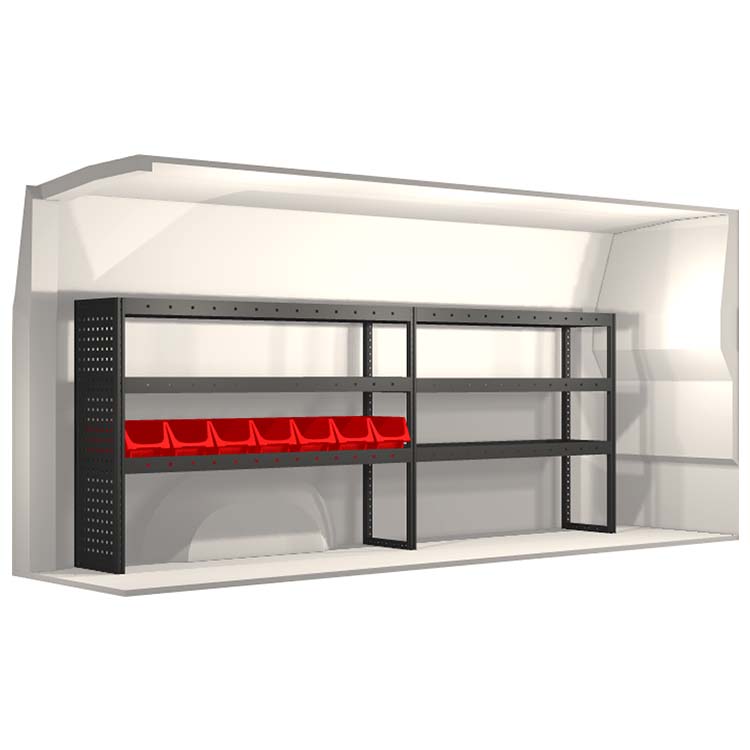 Inredningsförslaget är speciellt utformat för att passa bilmodellen perfekt. I de fall då hurtsar ingår så är dessa utrustade med kullagerskenor samt fullt utdragbara lådor med utdragsstopp. För ökad funktionalitet och minskad ljudnivå under färd är samtliga hyllor utrustade med gummimattor och hurtslådor med skumplast. Monteringssats ingår.