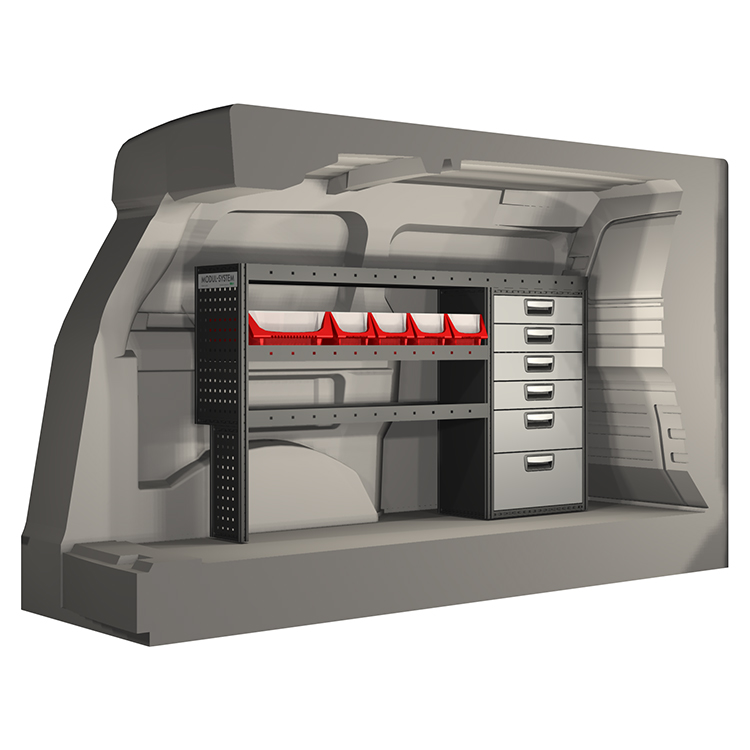 Inredningsförslaget är speciellt utformat för att passa bilmodellen perfekt. I de fall då hurtsar ingår är dessa utrustade med kullagerskenor samt fullt utdragbara lådor med utdragsstopp. För ökad funktionalitet och minskad ljudnivå under färd är samtliga hyllor utrustade med gummimattor och hurtslådor med skumplast. Monteringssats ingår.