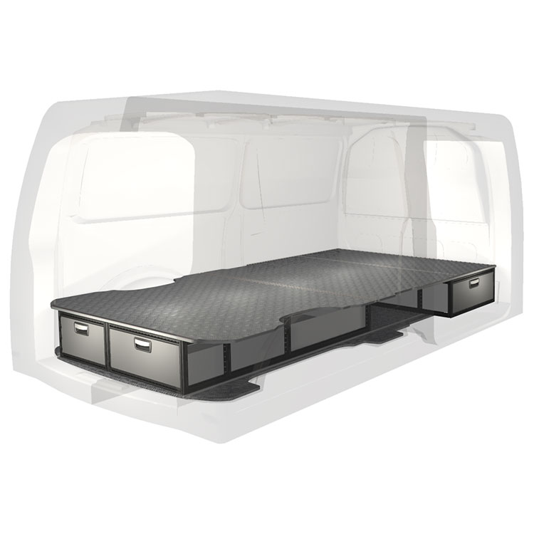 Kitet är designat för installation ovanpå ett Modul-Floor, där det undre golvets skenor nyttjas för en icke-förstörande installation. Dubbelgolvets skenor möjliggör enkelt montage av fordonsinredning och kantlister bidrar till en snygg finish.