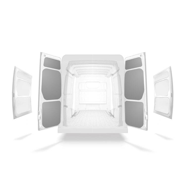 Beklädnaden kommer färdigskuren för att snabbt och enkelt kunna monteras mellan balkarna på bilens bakdörrar.