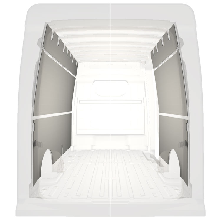 Beklädnad för sidodörrar, bakdörrar samt tak säljes separat.