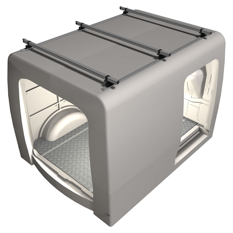 Lätt och robust takräcke med tre aluminiumbågar till en Maxus e-Deliver 3 2020-. Takbågarnas aerodynamiska design reducerar störande ljud och bidrar till minskad bränsleförbrukning.