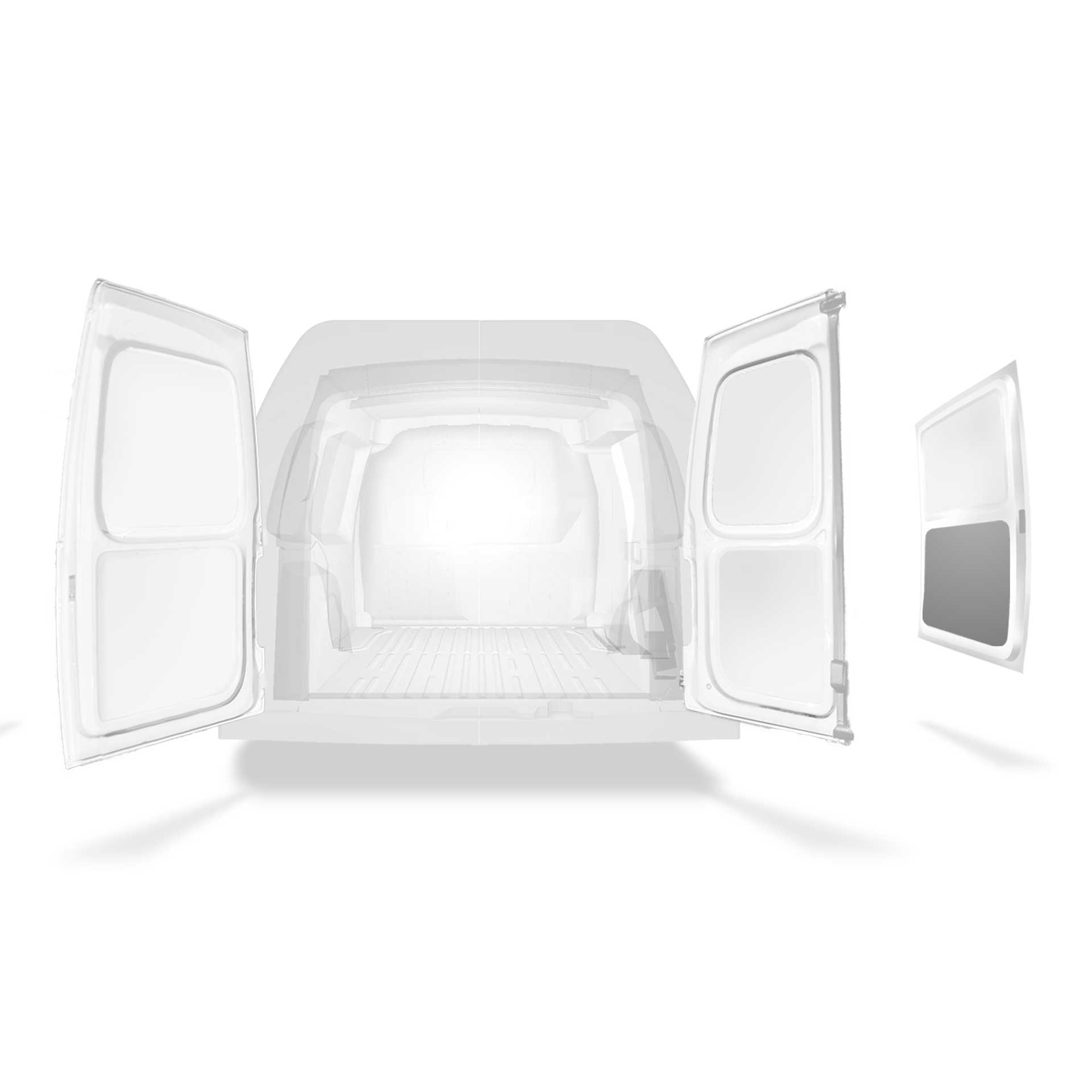 Beklädnad för innerväggar, bakdörrar samt tak säljes separat. Monteringsmaterial säljes också separat.