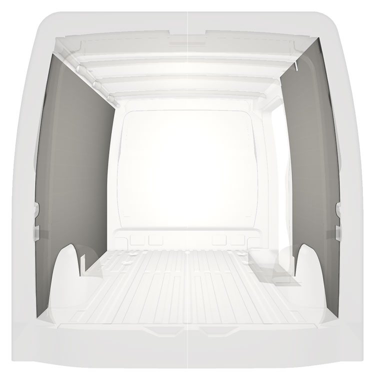 Den färdigskurna beklädnaden är designad för att täcka hela fordonets innerväggar och monteras med skruv.