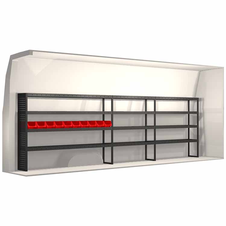 Inredningsförslaget är speciellt utformat för att passa bilmodellen perfekt. I de fall då hurtsar ingår så är dessa utrustade med kullagerskenor samt fullt utdragbara lådor med utdragsstopp. För ökad funktionalitet och minskad ljudnivå under färd är samtliga hyllor utrustade med gummimattor och hurtslådor med skumplast. Monteringssats ingår.