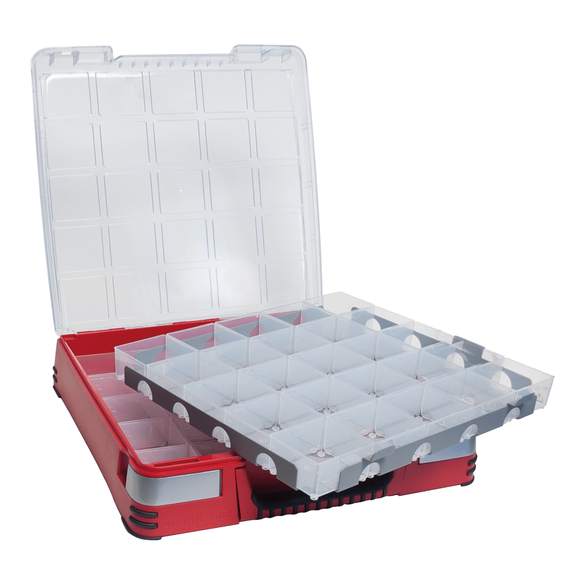 50 insatslådor och avdelarplåt. Obs! Väska ingår ej.