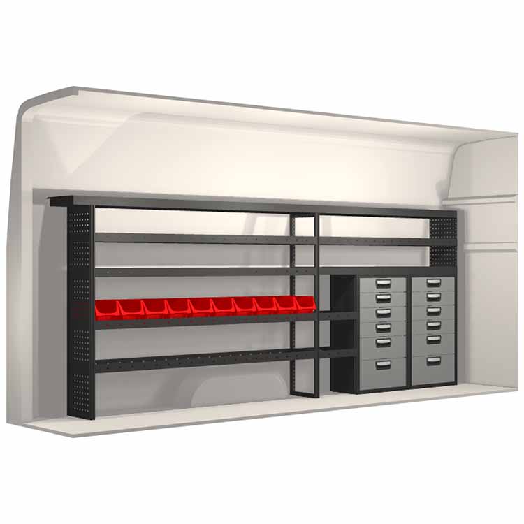 Inredningsförslaget är speciellt utformat för att passa bilmodellen perfekt. I de fall då hurtsar ingår så är dessa utrustade med kullagerskenor samt fullt utdragbara lådor med utdragsstopp. För ökad funktionalitet och minskad ljudnivå under färd är samtliga hyllor utrustade med gummimattor och hurtslådor med skumplast. Monteringssats ingår.