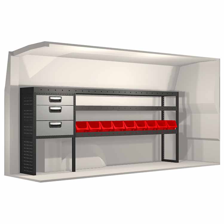 Inredningsförslaget är speciellt utformat för att passa bilmodellen perfekt. I de fall då hurtsar ingår så är dessa utrustade med kullagerskenor samt fullt utdragbara lådor med utdragsstopp. För ökad funktionalitet och minskad ljudnivå under färd är samtliga hyllor utrustade med gummimattor och hurtslådor med skumplast. Monteringssats ingår.