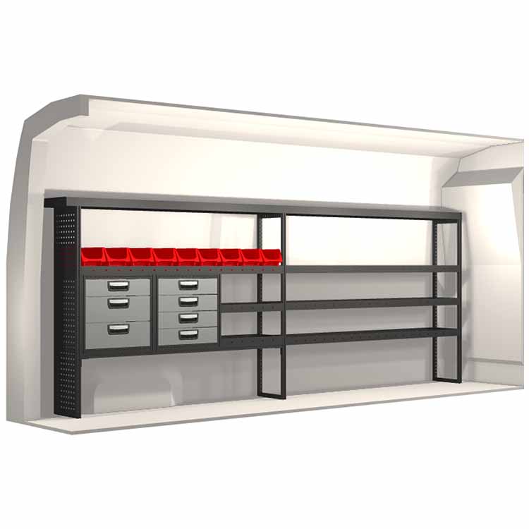 Inredningsförslaget är speciellt utformat för att passa bilmodellen perfekt. I de fall då hurtsar ingår så är dessa utrustade med kullagerskenor samt fullt utdragbara lådor med utdragsstopp. För ökad funktionalitet och minskad ljudnivå under färd är samtliga hyllor utrustade med gummimattor och hurtslådor med skumplast. Monteringssats ingår.