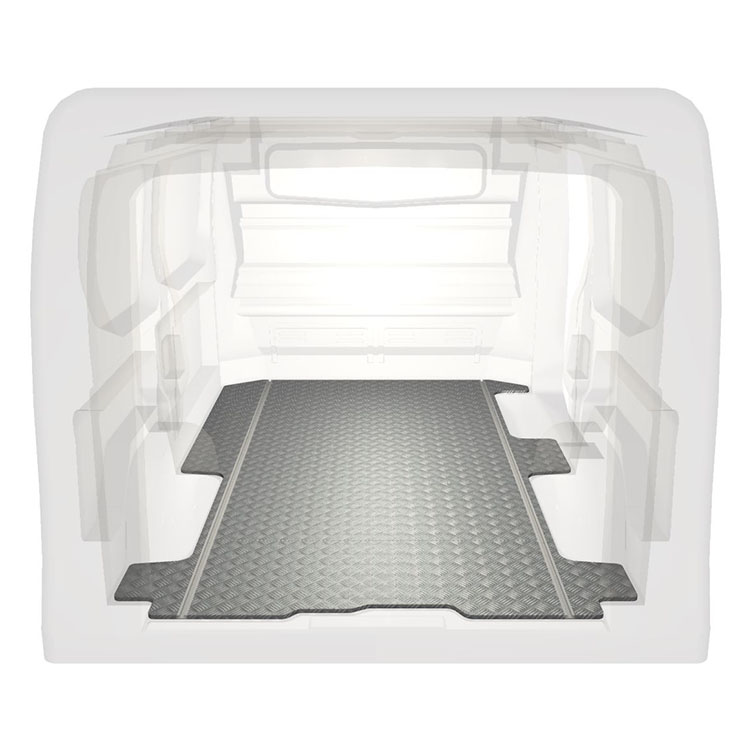 Lätt och robust golv med halkfri aluminiumdurk till en Renault Trafic / Opel Vivaro / Fiat Talento / Nissan NV300. Golvets integrerade skenor (längsgående) används för snabb och säker installation av bilinredning och andra tillbehör.