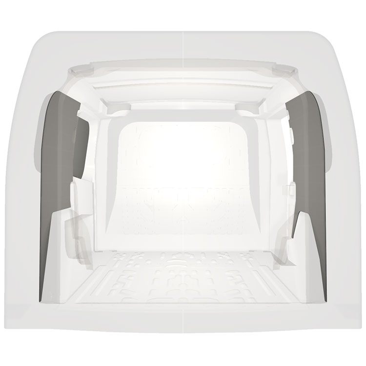 Den färdigskurna beklädnaden är designad för att täcka hela fordonets innerväggar och monteras med skruv.