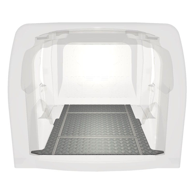 Lätt och robust golv med halkfri aluminiumdurk till en Opel Combo / Fiat Doblò. Golvets integrerade skenor (längsgående och tvärgående) används för snabb och säker installation av bilinredning och andra tillbehör.