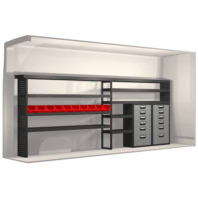 Inredningsförslaget är speciellt utformat för att passa bilmodellen perfekt. I de fall då hurtsar ingår så är dessa utrustade med kullagerskenor samt fullt utdragbara lådor med utdragsstopp. För ökad funktionalitet och minskad ljudnivå under färd är samtliga hyllor utrustade med gummimattor och hurtslådor med skumplast. Monteringssats ingår.