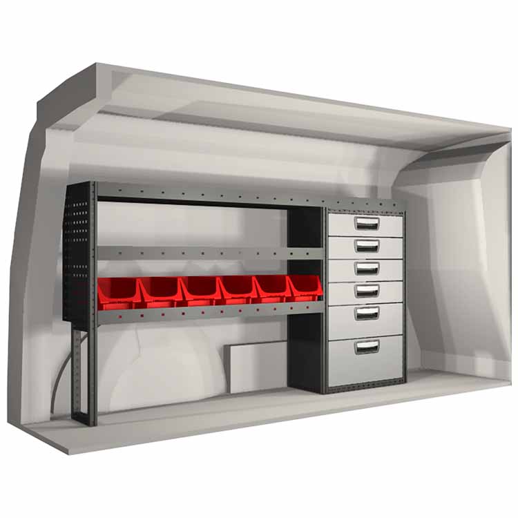 Inredningsförslaget är speciellt utformat för att passa bilmodellen perfekt. I de fall då hurtsar ingår så är dessa utrustade med kullagerskenor samt fullt utdragbara lådor med utdragsstopp. För ökad funktionalitet och minskad ljudnivå under färd är samtliga hyllor utrustade med gummimattor och hurtslådor med skumplast. Monteringssats ingår.