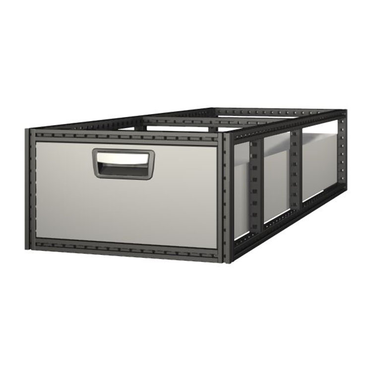 De extra långa hurtarna har en bur av ultrahöghållfast stål och lådor av aluminium. Lådorna är utrustade med kullager som standard och mixen är fasta och rörliga lager gör lådorna stabila och ger dem en mjuk gång.