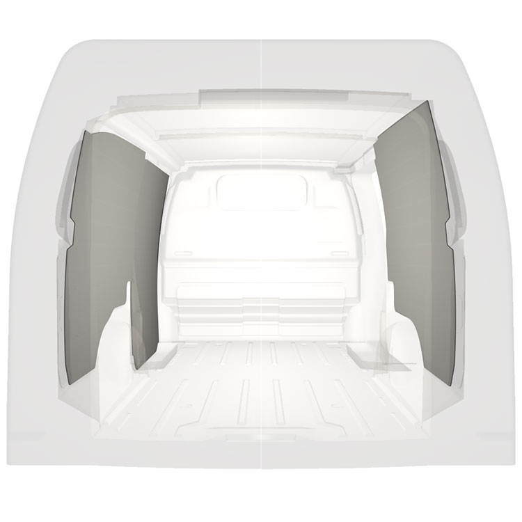Den färdigskurna beklädnaden är designad för att täcka hela fordonets innerväggar och monteras med skruv.