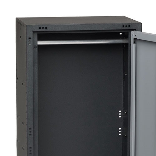 Stående förvaringsskåp som levereras med låsbar dörr som standard. Skåpsdörren kan monteras höger- eller vänsterhängd och handtaget har en inbyggd spärr som hindrar luckan från att öppnas under färd. Som tillval kan skåpet inredas med fasta och utdragbara hyllor samt klädstång.