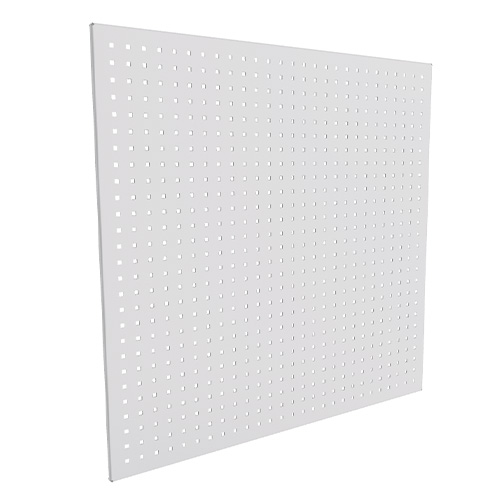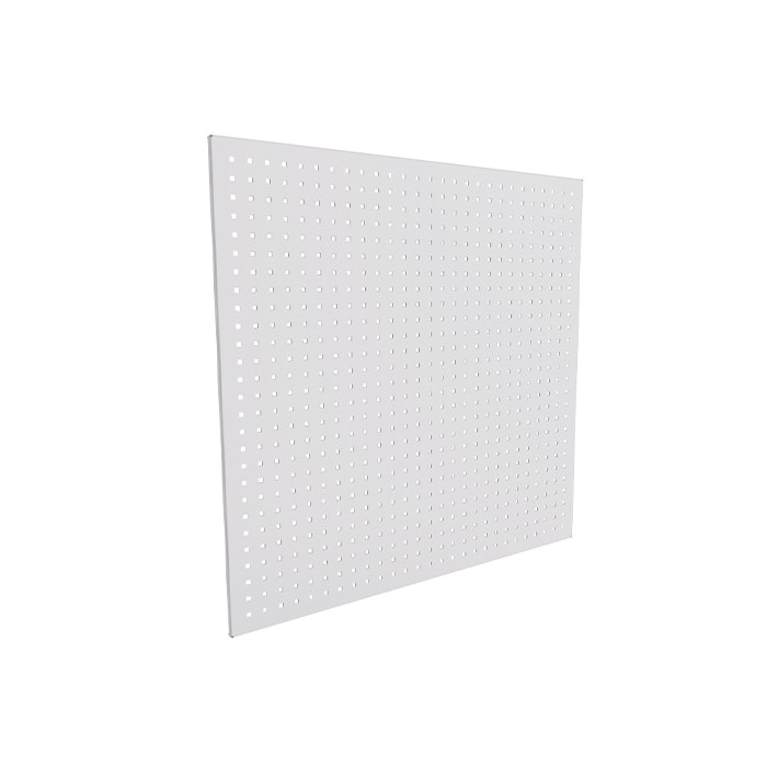 Verktygsplåt avsedd för upphängning på vägg. Plåten är tillverkad av aluminium och har 9 mm fyrkantshål med centrumavstånd 34 mm. Genom montering av verktygskrokar skapas ett flexibelt system för verktygsupphängning.