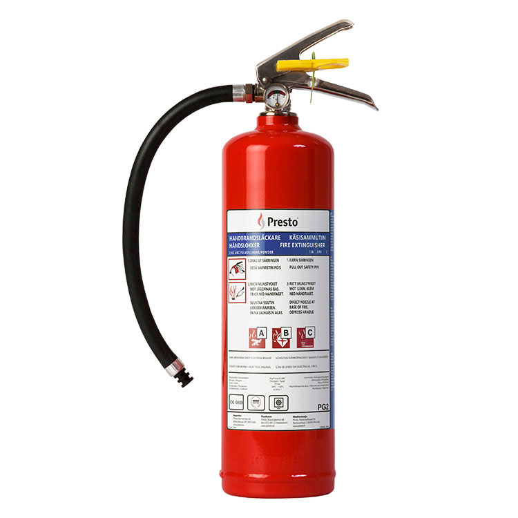 Eftersom pulver inte leder elektricitet är dessa släckare ofarliga att använda mot elektriska installationer upp till 1000V. Pulvret är frostbeständigt och släckaren därmed funktionsduglig från -30° till +60° C. Prestos pulversläckare är utrustade med avstängningsbar ventil samt är tryckladdade vilket innebär släckmedlet att kommer omedelbart när säkerhetssprinten är utdragen och tryckhandtaget trycks ner.