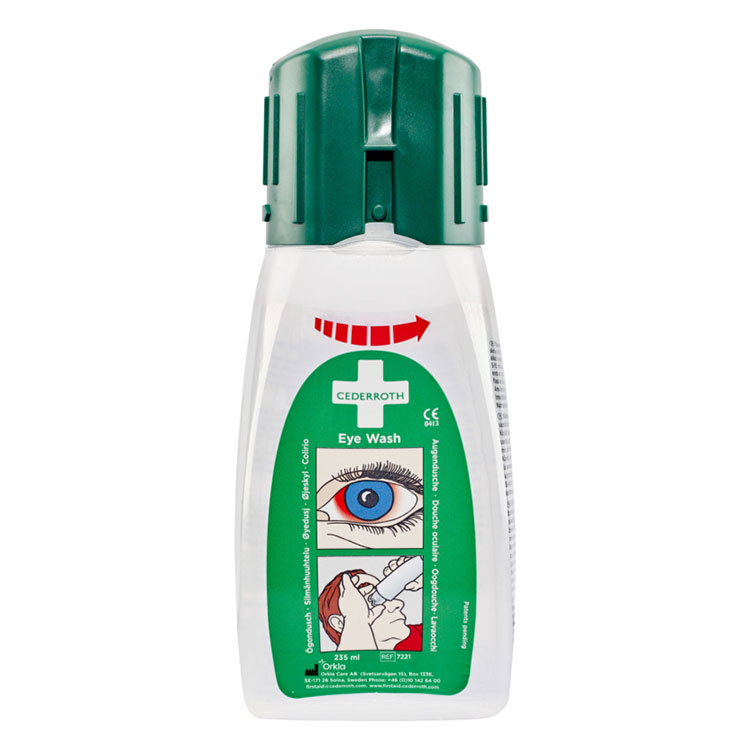 En personlig ögonduschflaska i fickformat som bekvämt kan bäras i fickan eller i tillhörande hölster. På så sätt finns den snabbt till hands vid olyckstillfället. Liten lätthanterlig flaska med ergonomisk ögonkopp och generöst flöde av vätska. Snabb och enkel att öppna. Öppnas med ett enda enkelt handgrepp. Vrid och flaskan är öppen.