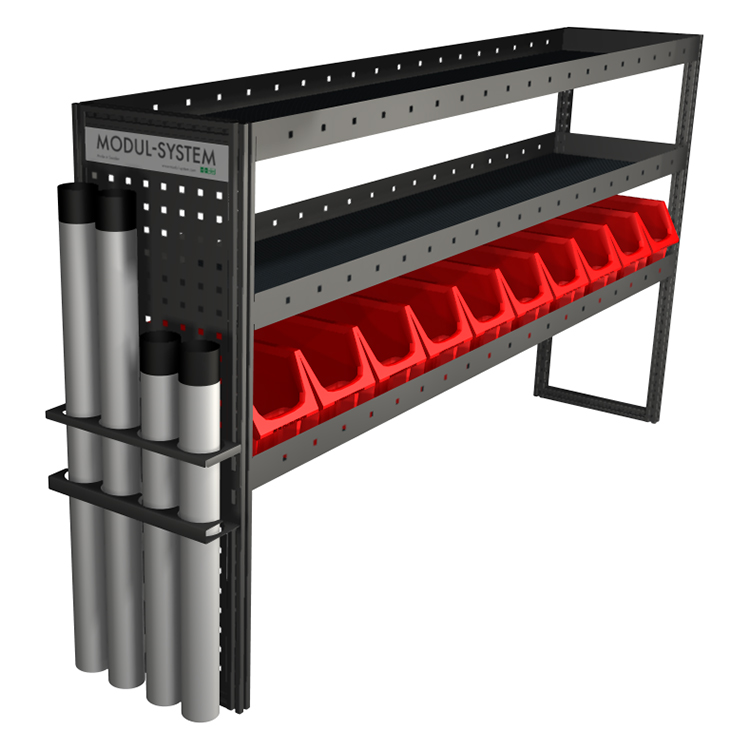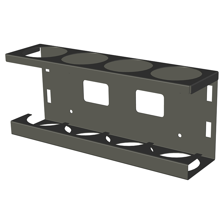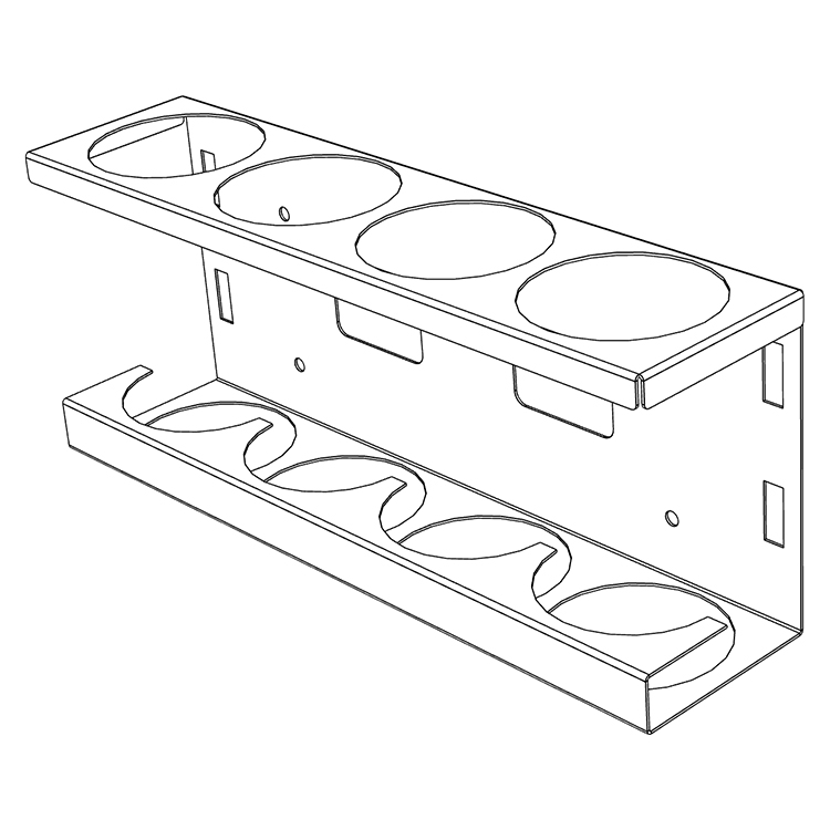 Hållare för upp till fyra rör med en maximal diameter på 70 mm. Hållaren kan monteras på en hyllstege eller en vägg.
