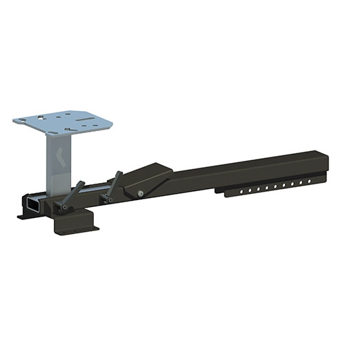 Skruvstyckshållare som passar de flesta skruvstycken och vridplattor och är försett med en automatisk säkerhetsspärr i utdraget samt inskjutet läge. Fästplattan är 180 mm bred och 200 mm lång. Hållarens höjd är anpassad för bästa arbetshöjd i fordon med låg lasthöjd.