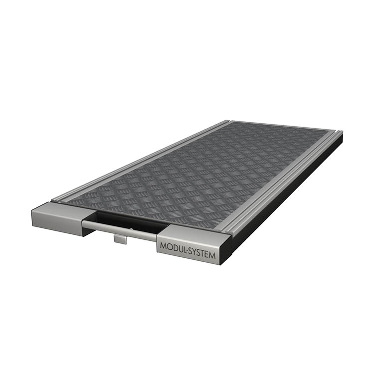Lätt och robust underrede i ultrahöghållfast stål och front i anodiserad aluminium. Underredet är avsett för fast montering i fordonet och är försedd med en lastplatta för utökad funktionalitet. Lastplattan är tillverkad i sandwichmaterial med en aluminiumtopp för lätt vikt och robust finish.