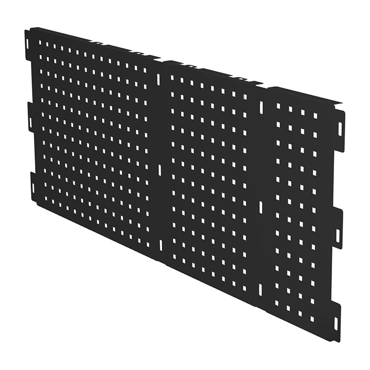 Verktygsplåt för extra lång hurts. Plåten skyddar den extra långa lådan och bidrar till en snygg design. Plåten har 9 mm fyrkantshål med centrumavstånd 34 mm, vilket möjliggör montering av verktygshållare och andra tillbehör. Installeras med skruv (medföljer ej).