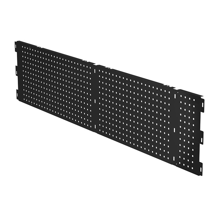 Verktygsplåt för extra lång hurts. Plåten skyddar den extra långa lådan och bidrar till en snygg design. Plåten har 9 mm fyrkantshål med centrumavstånd 34 mm, vilket möjliggör montering av verktygshållare och andra tillbehör. Installeras med skruv (medföljer ej).