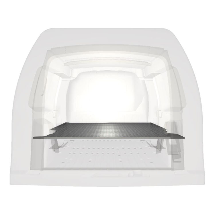 Kitet är designat för installation ovanpå ett trägolv. Dubbelgolvets skenor möjliggör enkelt montage av fordonsinredning och kantlister bidrar till en snygg finish.