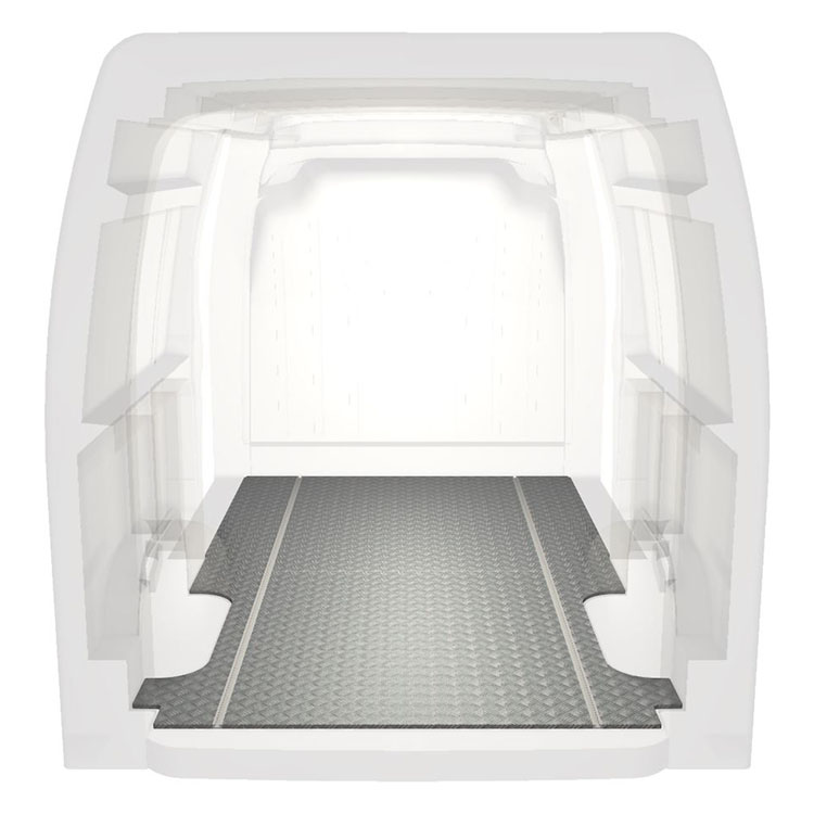 Lätt och robust golv med halkfri aluminiumdurk till en Renault Master / Opel Movano / Nissan NV400. Golvets integrerade skenor (längsgående) används för snabb och säker installation av bilinredning och andra tillbehör.