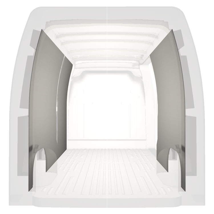 Den färdigskurna beklädnaden är designad för att täcka hela fordonets innerväggar och monteras med skruv.