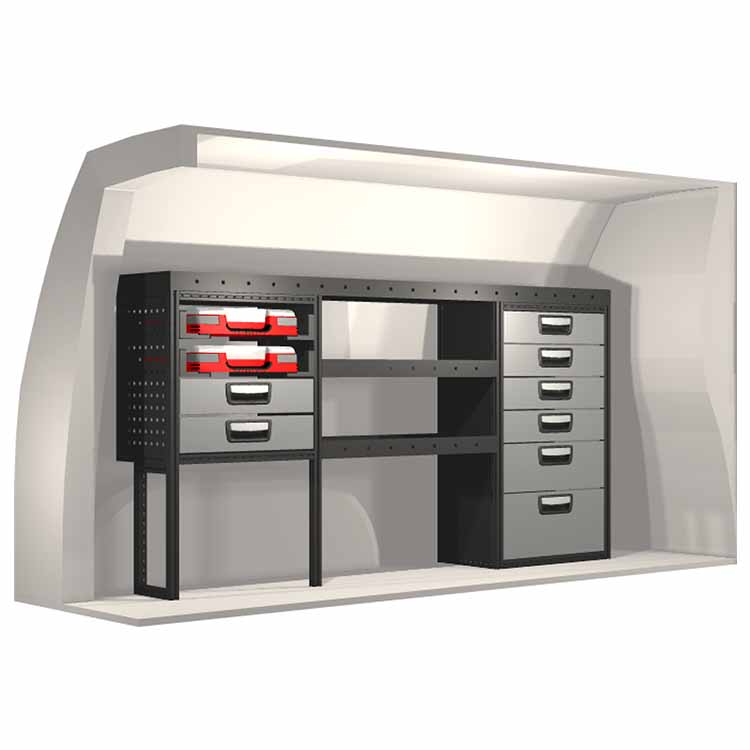 Inredningsförslaget är speciellt utformat för att passa bilmodellen perfekt. I de fall då hurtsar ingår så är dessa utrustade med kullagerskenor samt fullt utdragbara lådor med utdragsstopp. För ökad funktionalitet och minskad ljudnivå under färd är samtliga hyllor utrustade med gummimattor och hurtslådor med skumplast. Monteringssats ingår.