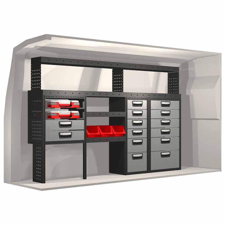 Inredningsförslaget är speciellt utformat för att passa bilmodellen perfekt. I de fall då hurtsar ingår så är dessa utrustade med kullagerskenor samt fullt utdragbara lådor med utdragsstopp. För ökad funktionalitet och minskad ljudnivå under färd är samtliga hyllor utrustade med gummimattor och hurtslådor med skumplast. Monteringssats ingår.