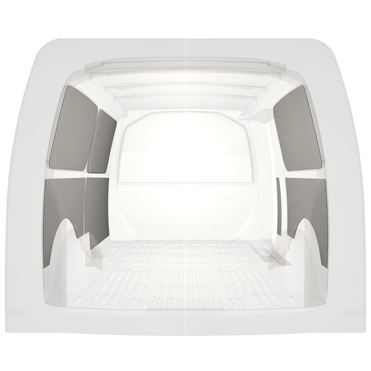 Beklädnad för sidodörrar, bakdörrar samt tak säljes separat.