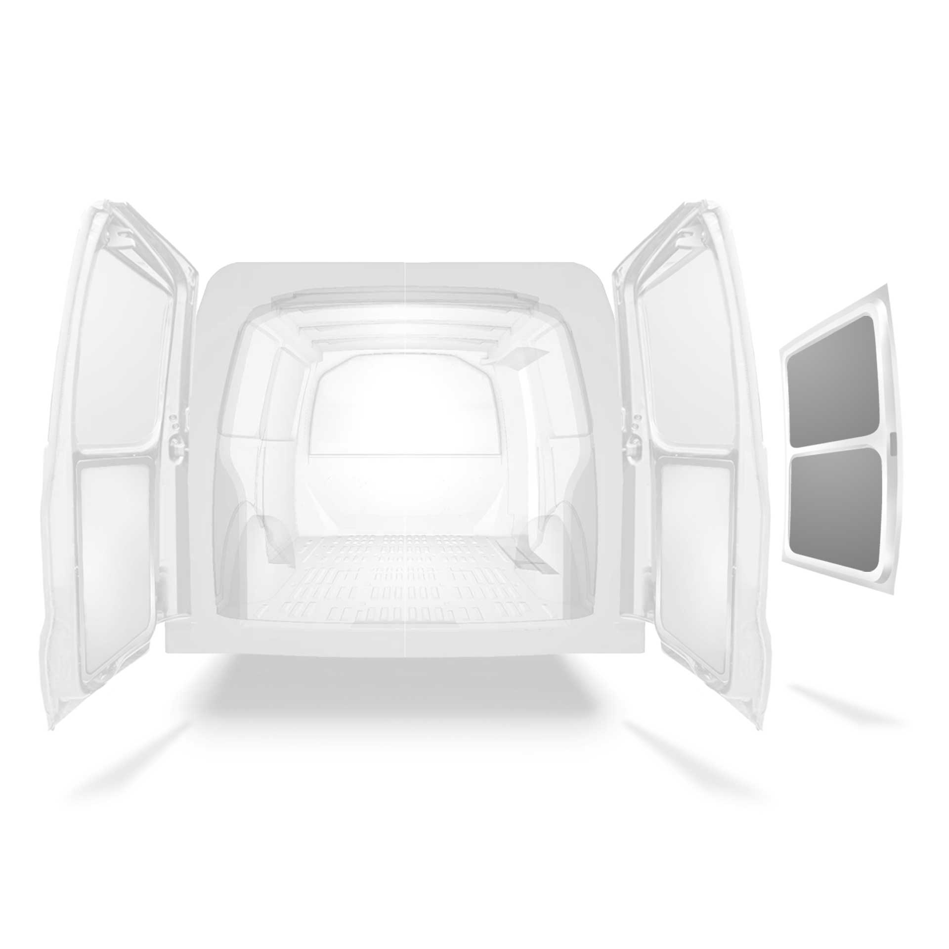 Beklädnad för innerväggar, bakdörrar samt tak säljes separat. Monteringsmaterial säljes också separat.